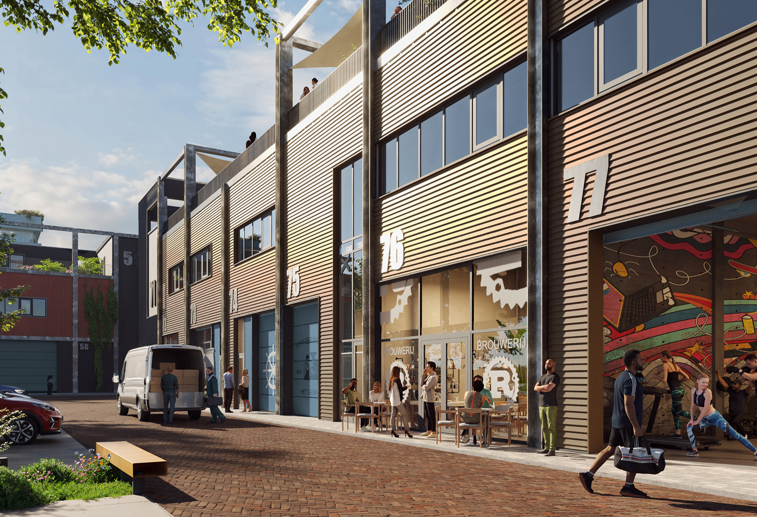 Elk gebouw is anders en biedt flexibiliteit. Units zijn samen te voegen of te splitsen. Er zijn al ruimten beschikbaar vanaf 60 m² – ideaal voor makers en ontwerpers. Ook zijn er kantoorruimten tot 300 m², verdeeld over meerdere verdiepingen. Altijd met toegang tot een gedeelde buitenruimte. Eén gebouw is nog vrij indeelbaar. Ideaal als jij je eigen werkgebouw wilt samenstellen.
